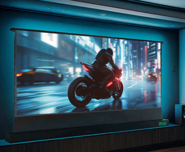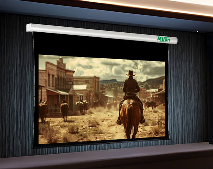 Micro-perforated 0.6mm fabric ensures acoustic transparency and high-quality projection. Its tiny perforations let sound waves pass through, allowing speakers behind the screen without compromising audio clarity.